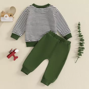 Baby Boy Outfit Long Sleeve Green Embroidered Top and Bow Tie Pants Set