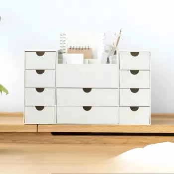 Desktop Organizer Box with Multi-Grid Storage & Dust-Proof Cover