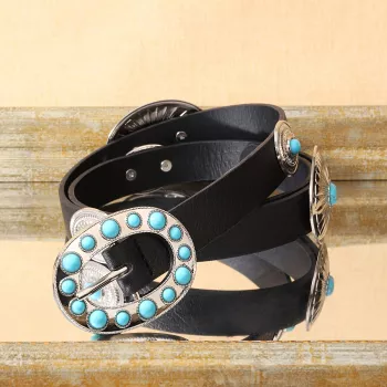 Vintage Western Women's Belt with Metal Conchos - Stylish Cowboy Accessory